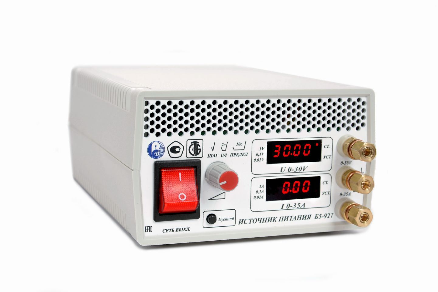Диапазон -0-30,00 вольт/0-35,00 ампер. Максимальная постоянная выходная мощность -700 ватт. Hизкие пульсации выходного напряжения- 0,5-0,6 мВскз. Минимальный шаг установки выходного напряжения-10 мВ. Минимальный шаг установки ограничения по току- 10 мА.